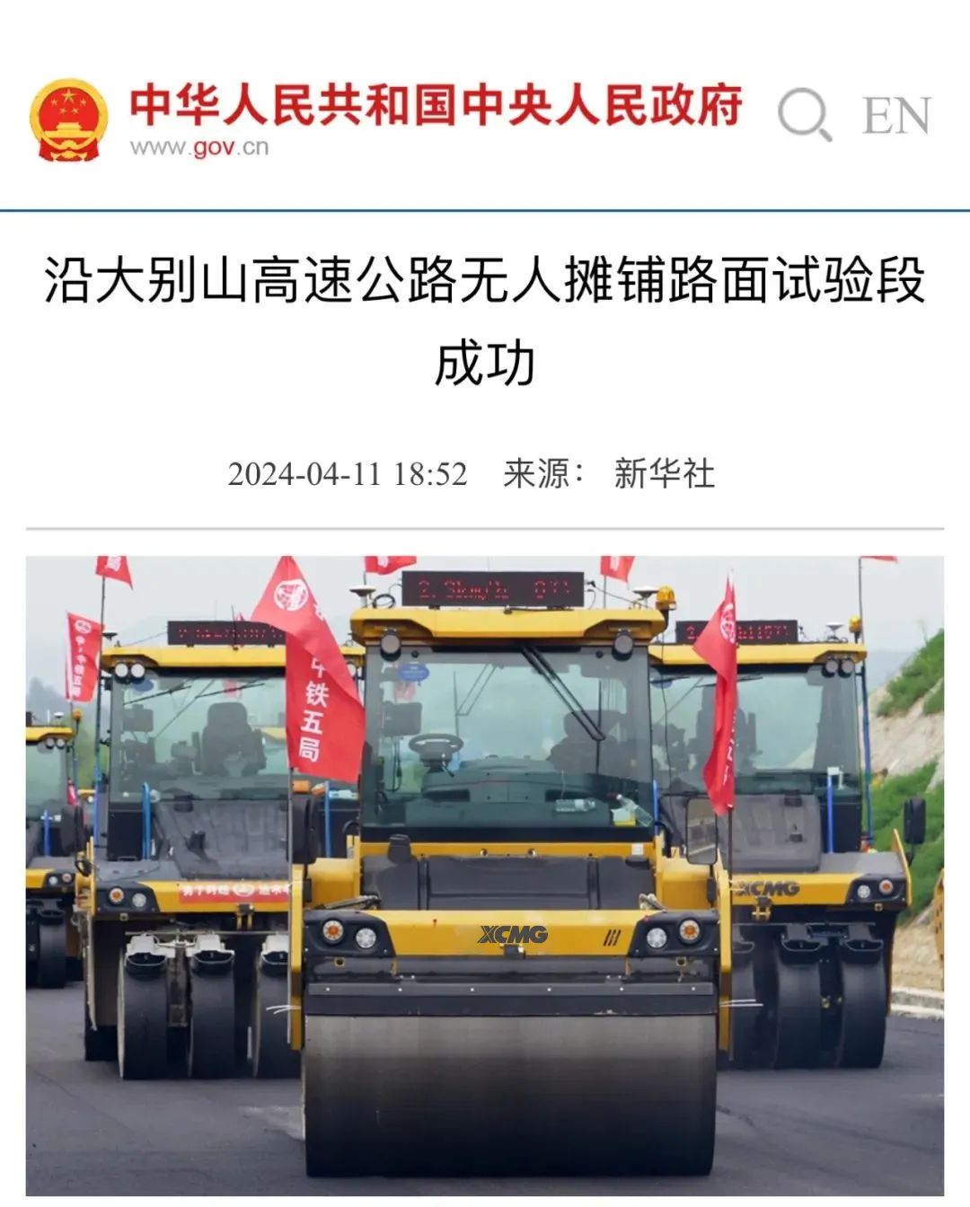 徐工数字化智能施工技术的运用,减少人为误差,确保工程质量的精准可控,有效提升沿大别山高速鸡商段的建设效率和质量。