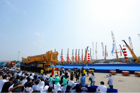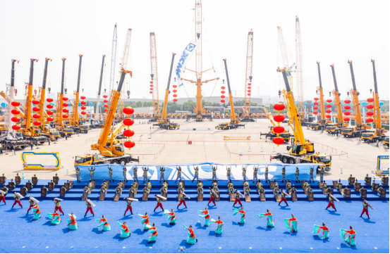 全球最大的轮式起重机制造基地内,舞龙舞狮夹道相迎,不同型号的“大咖”产品纷纷前来“坐镇”,在蓝天白云映衬下,钢铁臂膀光泽凛冽,队伍严阵以待,以高规格的产品礼仪,向全球客户致以最崇高的敬意。