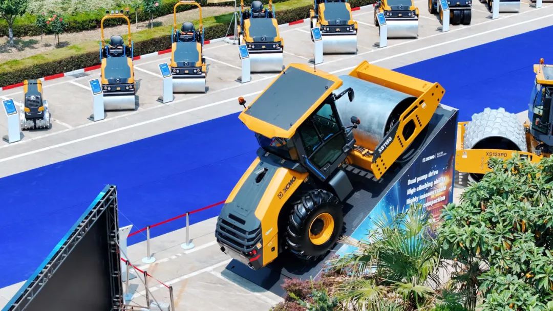 现场展示的机械设备也为全球客户提供了道路施工中全生命周期的定制化解决方案。特别值得一提的是,XS115G单钢轮压路机的爬坡能力达65%,现场展示成为一大亮点。这款压路机成功征服了大角度坡道,展现出其在复杂地形下的卓越性能。徐工成套道路机械充分彰显了徐工在技术创新和产品研发上的实力,更以其高效、稳定的性能,赢得了海外客户的高度赞誉。
