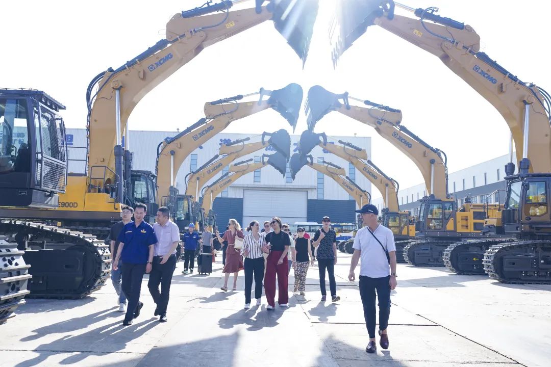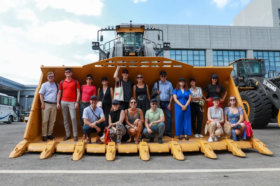 徐工第一站,欧洲外交官一行步入徐工绿色化、数字化装载机械制造基地,近距离接触徐工超大吨位电驱动装载机XC9350、新能源、XC9系列与小型装载机械。现场体验新能源产品试驾、令人叹为观止的滑移装载机表演,赢得高度好评。
