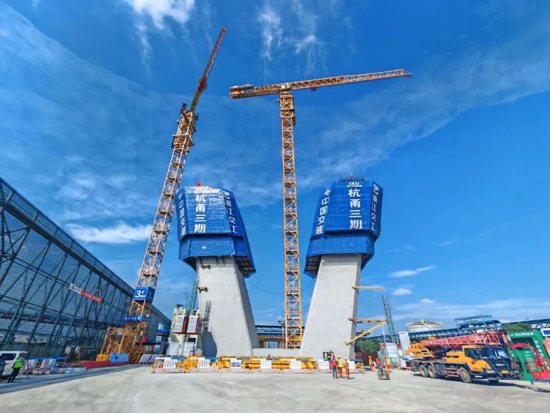 杭甬复线宁波三期项目是国家高速公路杭甬高速复线的重要组成部分和宁波舟山港集疏运的重要通道。作为项目的关键控制性工程,甬江特大桥全长1730米,是目前世界上最大跨径的不对称三塔斜拉桥,设计采用大倾角钻石型塔身。