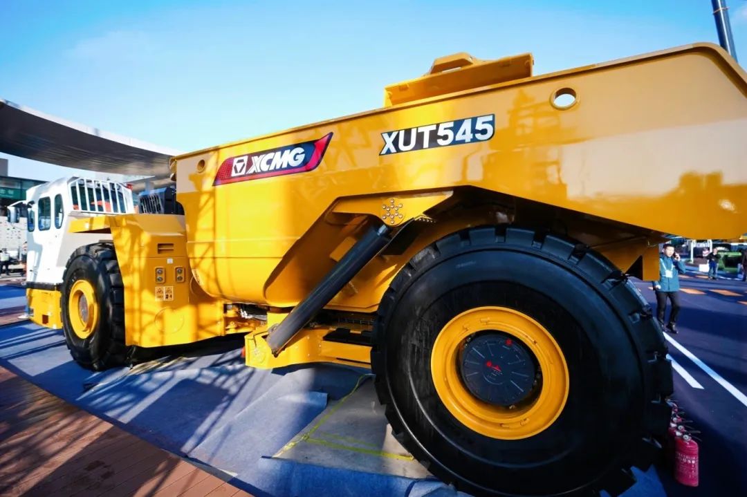 在徐工室内展场 ,驾驶员坐在系统座舱,通过远程控制台人机交互界面,精准操控徐工XUL202A地下内燃铲运机在江苏利国铁矿下施工作业,实现 人员地上遥操、设备地下作业 的远程操控及自动驾驶,将“驾驶室”搬进了舒适的集控室, 实现矿山开采“无人化”。