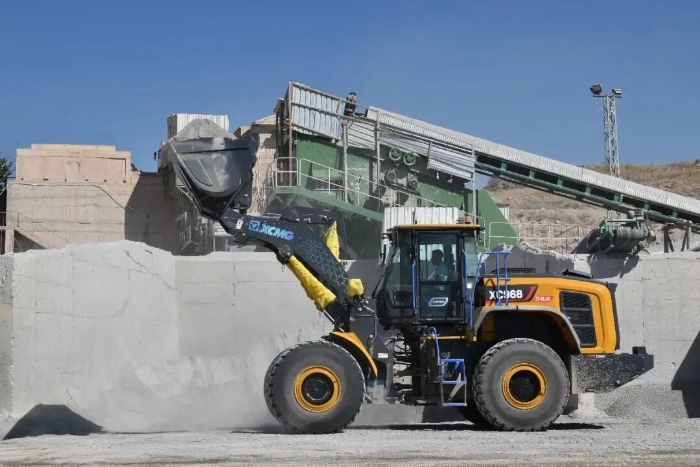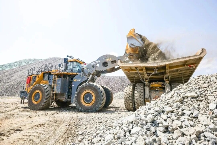 ▲中国最大吨位装载机XC9350XE露天矿山作业