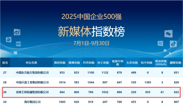 在新媒体时代,徐工致力于将硬核工业装备,转化为有温度、可感知的品牌故事,在屏端与无数用户和伙伴建立了深度链接与情感共鸣。此次位列行业新媒体影响力第一,正是公众与行业对徐工品牌声量与实干成果的双重认可。