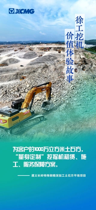 贵州遵义长岭特殊钢精深加工技改项目为贵州省2023年重点项目,土石方平场量1000多万方,在整个建设过程中,徐工挖机为客户“量身定制”租赁、施工、服务保障方案。