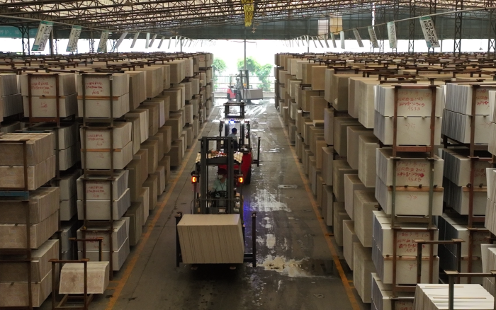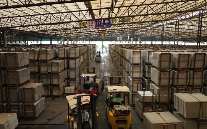 在华南区某大型陶瓷厂内,十几台徐工重载高压锂电叉车正在进行繁忙的搬运装卸工作,为即将到来的市场旺季做好准备。