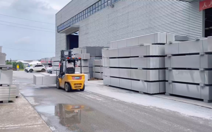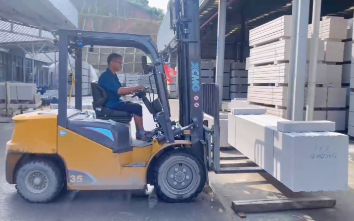 湖南某石材厂内,徐工叉车新 E 系列电动平衡重叉车,耀世登场!