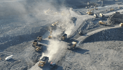 在鄂尔多斯某大型露天煤矿,徐工大吨位挖掘机正挥舞着坚实的臂膀,机器轰鸣,岩石剥落,现场一片繁忙。