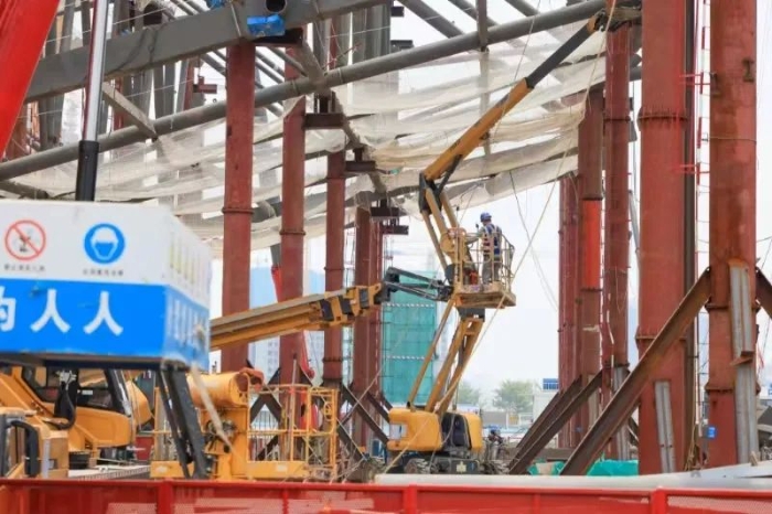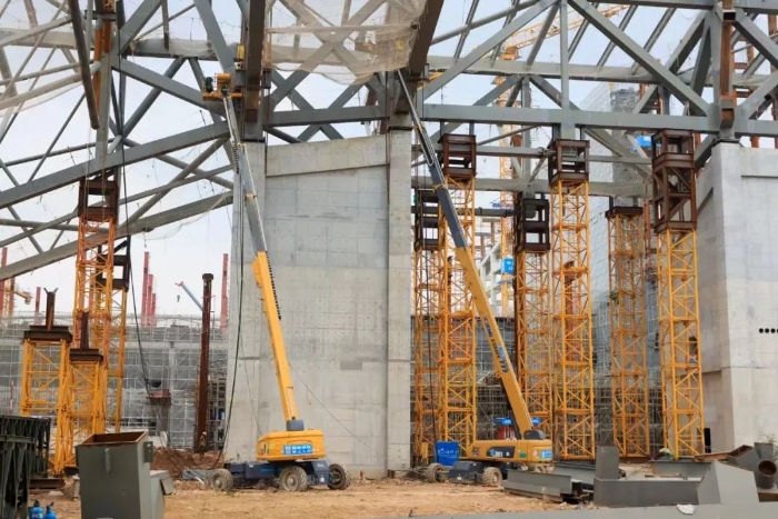 忙碌的工地上,随处可见“徐工金”辛劳的身影。此次参与施工的有四十余台徐工高空作业平台,高度从22米到40米不等,主要负责场馆钢结构的安装工作。