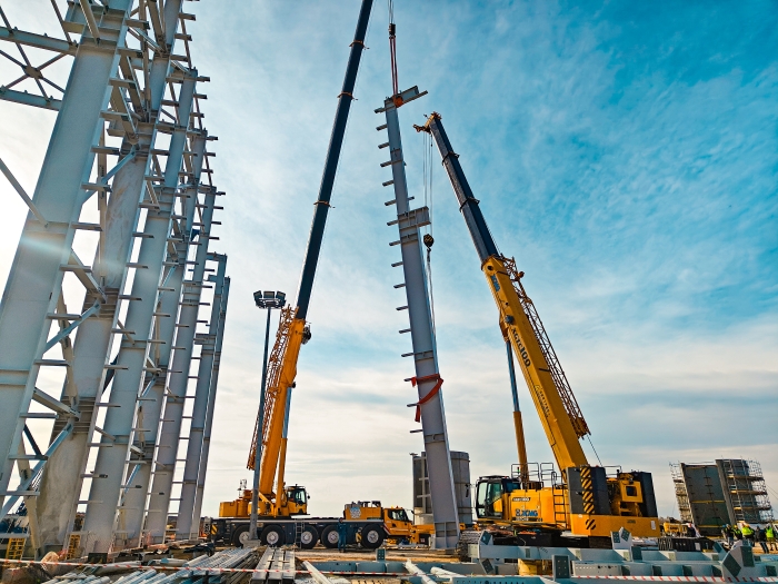 这些起重机不仅能够在狭小空间内精确吊装,还能在复杂地形中保持稳定运行,大大缩短了施工周期。徐工起重机群的出色表现不仅保证了工程的质量和进度,还充分展示了徐工作为全球领先工程机械制造商的实力和水平。