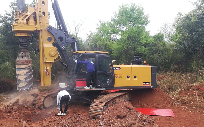 现场施工桩径1000mm左右,桩深7.5-13m,徐工XR138F日钻孔达20m。客户赞叹道:“徐工产品设备稳定,成孔精度高,施工效率快,值得信赖!”