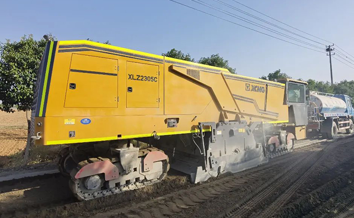 徐工XLZ2305C路面冷再生机凭借强劲可靠的铣刨系统、高效节能的动力系统、多级可调的颗粒度控制以及精确均匀的智能喷洒等优势,在本次县道改建项目中承担路面再生工序施工。