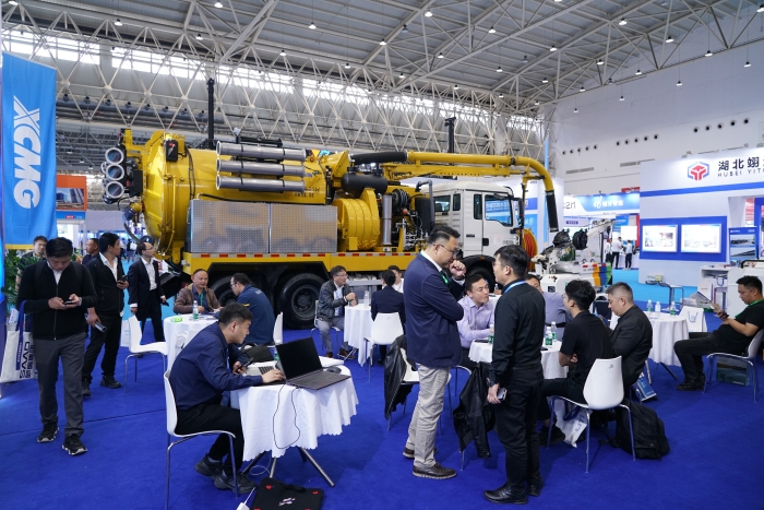 本次中国国际管网展览会上,徐工大流量排水抢险车、清洗吸污车、下水道疏通清洗车、小型轮式抓斗车、小型履带式水冲车管等设备悉数亮相。