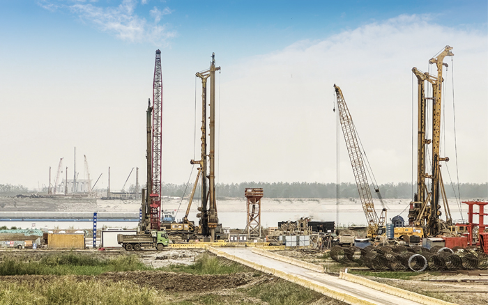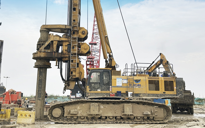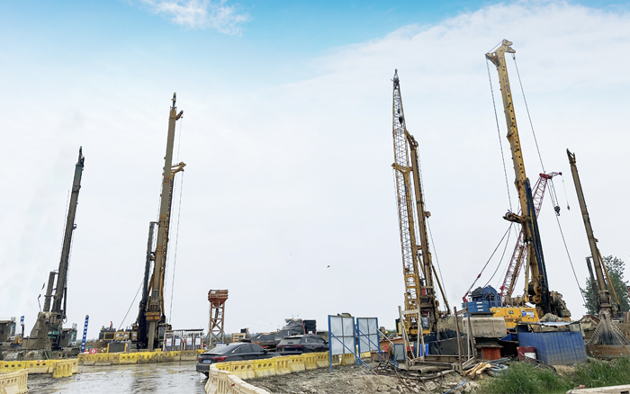 徐工XR550D、XR580HD等多台徐工大吨位旋挖钻机群凭借精湛的技术和卓越的性能成功攻克了地层复杂、工期紧迫等多重难题,平均成孔周期68小时,全面提速大桥桩基础建设。