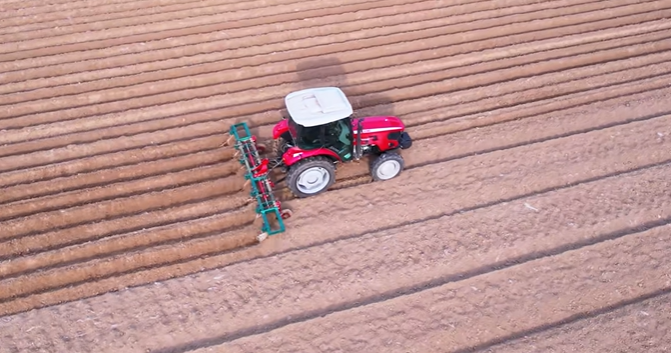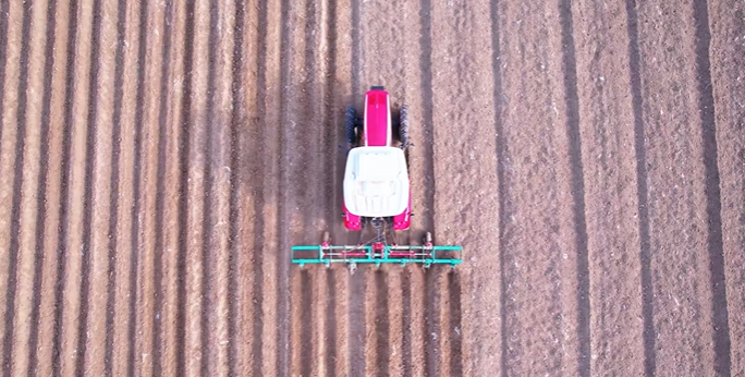XT804-4D起垄机作业,起六垄,作业速度为9km/h。