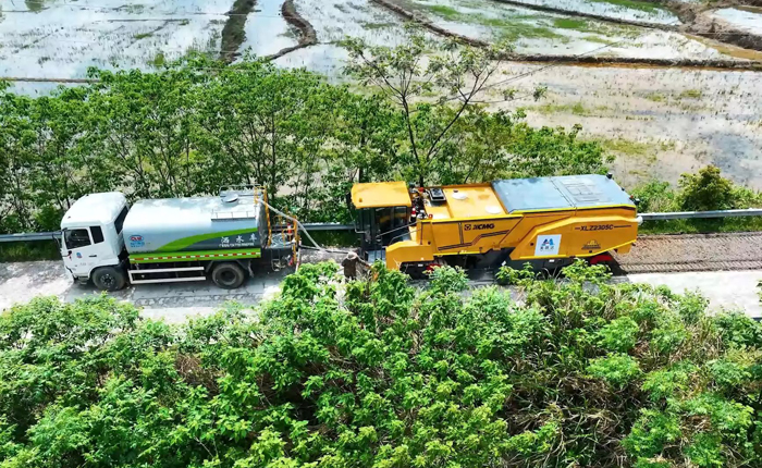针对这些痛点,徐工智慧施工技术成套道路装备全场景解决方案,专门针对乡村道路施工场景,制定了适配的场景解决方案。该方案融合了推土、平地等多项3D控制技术,并配备水泥路面冷再生机,实现了全断面的数据融合,有效消除了原有路面的缺陷。特别值得一提的是,该方案将北斗定位技术与惯性导航系统相结合,巧妙解决了在定位信号不佳区域的施工难题。