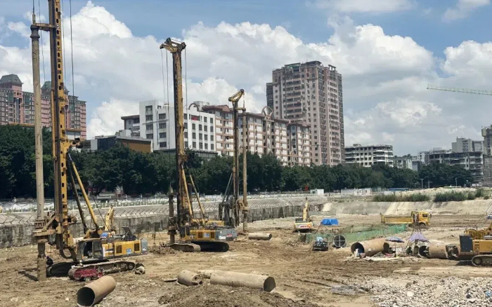 施工区地质构造复杂,石灰岩、沙层,粘土和溶洞交错,桩深20-30m,桩径0.8-1.4m,且面临塌方、缩孔、漏浆等危险。如此高难度的施工条件,项目方果断选择徐工旋挖钻机进行助力。