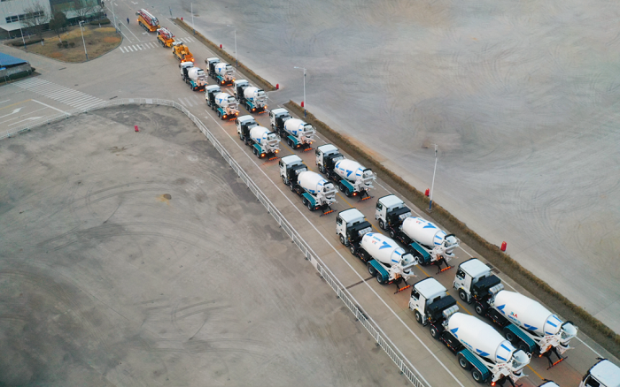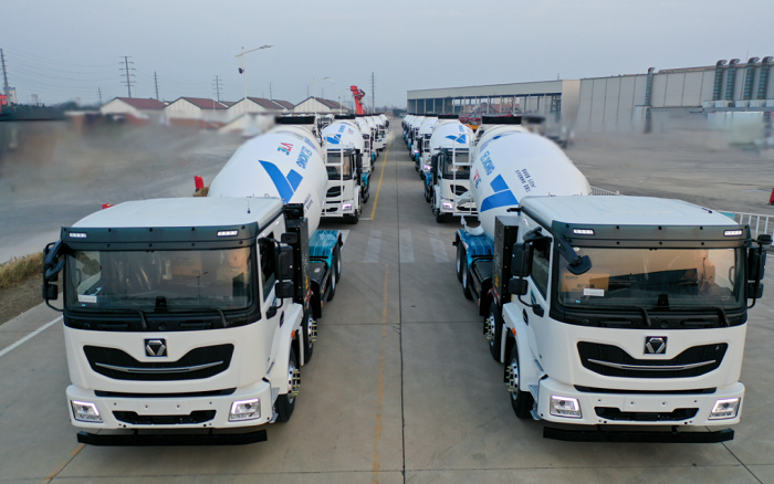 徐工新能源搅拌车延续强势表现。排列整齐、蓄势待发,即将奔赴江苏南通,助力当地中石油项目。