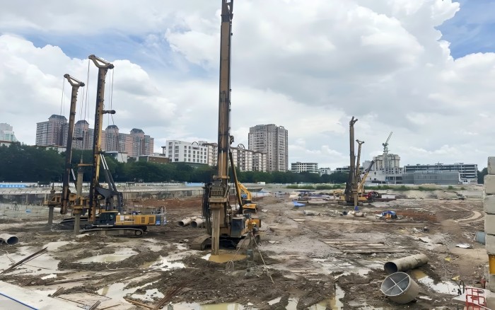 施工区地质构造复杂,石灰岩、沙层,粘土和溶洞交错,桩深20-30m,桩径0.8-1.4m,且面临塌方、缩孔、漏浆等危险。如此高难度的施工条件,项目方果断选择徐工旋挖钻机进行助力。