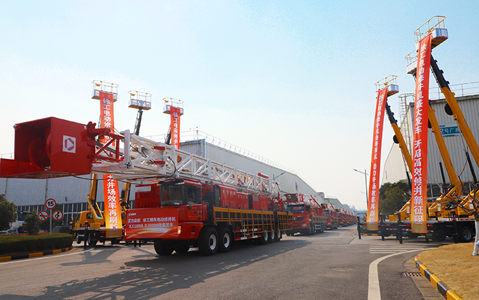 近日,徐工电动修井机批量发车仪式隆重举行。一台台崭新的设备整齐排列,气势恢宏,彰显着雄厚的技术与制造实力。值得一提的是,此次批量发车的修井机设备,积极响应绿色能源发展趋势,融入了先进的新能源技术,堪称绿色修井新势力的杰出代表。