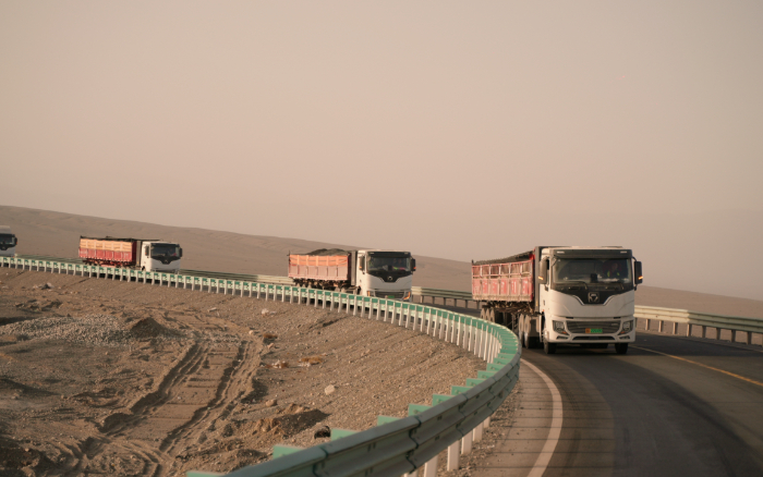 西北戈壁滩上山脉和天际线交织成一幅壮丽的画卷这片土地不仅有着丰饶的矿产资源还孕育着不断崛起的力量徐工新能源重卡应时而至。