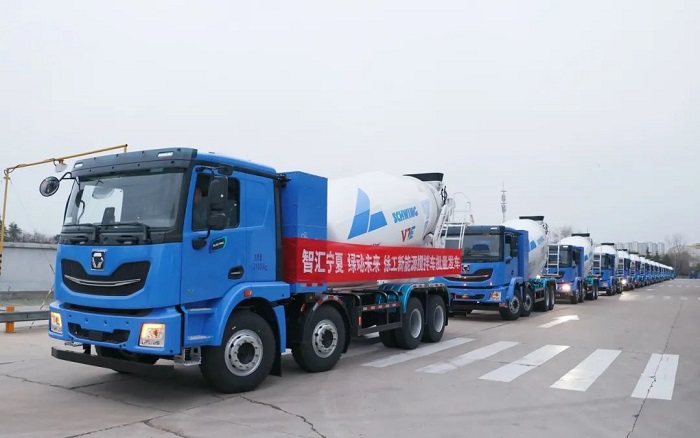 徐工新能源搅拌车正式交付宁夏某项目。该批车辆搭载纯电驱动技术,实现零排放与低噪音作业。车辆配备智能能量回收系统,能量回收超30%,助力"双碳"目标落地西北腹地。