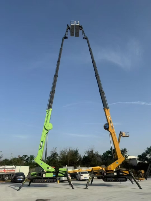 据了解,该项目拟新建20座浅圆仓粮仓,需同步实施内部维护与智能化改造,包括传感器安装、仓壁修补等作业。粮仓内部空间狭窄,粉尘敏感度高,且需杜绝燃油设备可能引发的爆燃风险,传统脚手架或宽体设备难以满足需求,徐工XGS39X-Li蜘蛛履带直臂高空作业平台成为破题关键。