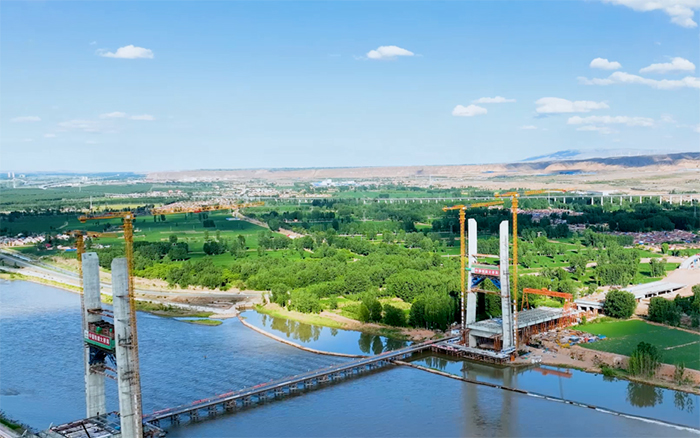 中卫下河沿黄河公路大桥全长1228米,主塔高113米,相当于40层楼高,是目前宁夏单跨跨径最长、桩基最深、桩径最粗、承台混凝土量最大、主塔最高的斜拉桥,单体施工体量为宁夏桥梁建设史上之最。