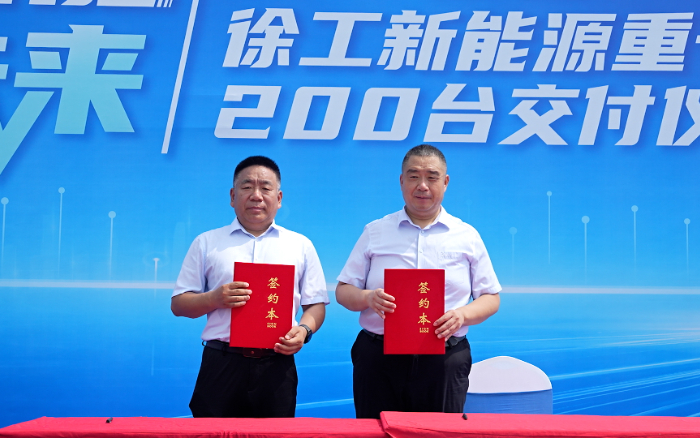 近日,200台徐工新能源重卡在华北区域火速集结、交付用户,奔赴当地砂石运输和城市建设一线。