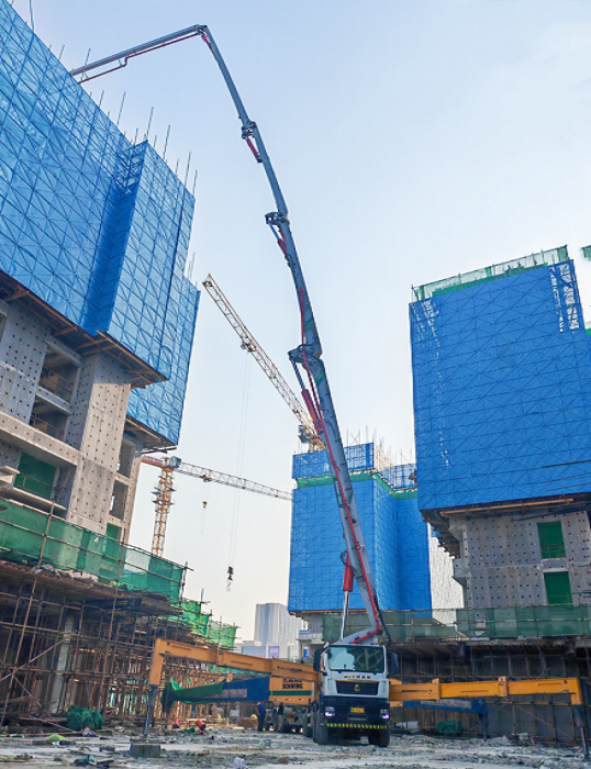 在高铁新区超高层项目中,258 米地标建筑核心筒浇筑是关键环节,对泵车的覆盖能力和精准度要求严苛。徐工72米泵车以71.1 米有效长度,轻松完成了这一艰巨任务。智能防倾翻技术、智能臂架技术等充分展现了 “中国高度” 背后的精准实力。