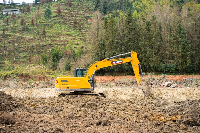 徐工XE135G挖掘机成为破题关键,项目负责人表示:“徐工设备的抓地力确实不错,加强型底盘和定制铲斗,保障了在松软土质中的施工稳定性,驾驶员操作它效率都提升了不少,为后续水利设施建设打下了坚实的基础。”