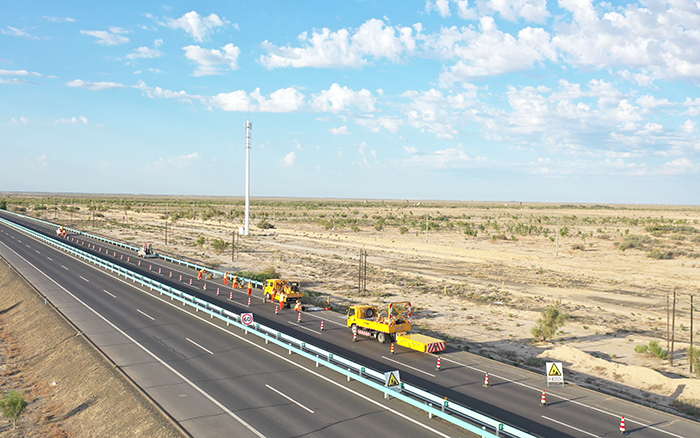 不光是安全卫士,它们还是高效的 “移动仓库”。货箱敞开着,里面整齐码放着铁锹、沥青、警示锥等施工所需的工具和材料。施工时,人员无需来回奔波取物,伸手就能拿到需要的东西,让施工节奏得以加快,省去了不少麻烦。当施工收尾,防撞缓冲车驶离后,留下的不仅是平整的路面,更有它们为这次施工全程护航的印记。