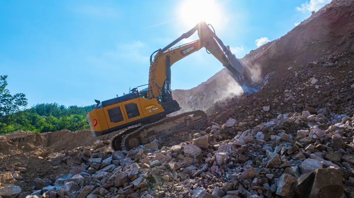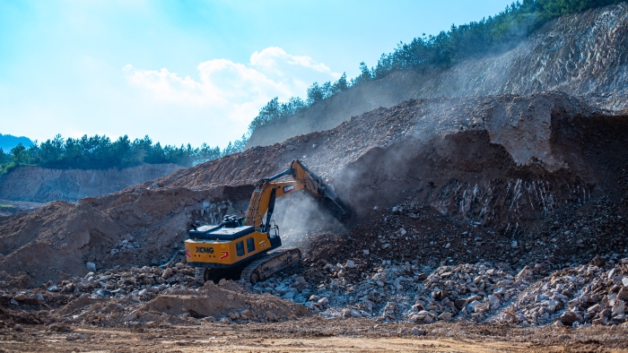 湖北黄冈矿区,机械轰鸣震彻山谷。今年初,这片年产能百万吨的露天石矿山迎来一位新的“攻坚主力”——徐工XE750GK履带式液压挖掘机,以其超强实力,为矿山新质生产力发展注入澎湃动能。
