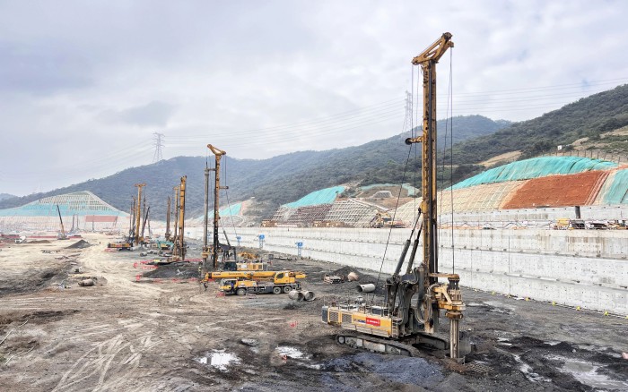 项目场地属软土地基且临近地铁5号线前海公园站,紧贴车站C出口主体结构,施工难度大。现场使用徐工旋挖设备11台,自进场以来,旋挖钻机群相当“给力”,保证项目按照施工节点顺利推进。