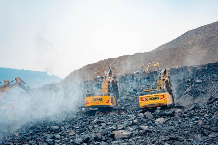 为确保工程节点,施工方经多轮方案论证,最终引入了14台徐工挖掘机组成的主力设备集群,承担核心的山体破碎及土石料装车任务。在总量高达300万方的工程面前,徐工XE650GK、XE380K、XE335GK等机型展现出强大的工况适应性。其中,8台明星机型XE650GK配备215型破碎锤,凭借其独有的破碎多级调频控制技术,在面对高硬度玄武岩时日均破碎量稳定在1500吨以上,同时将油耗控制在约40升/小时,实现了效率与节能的出色平衡。