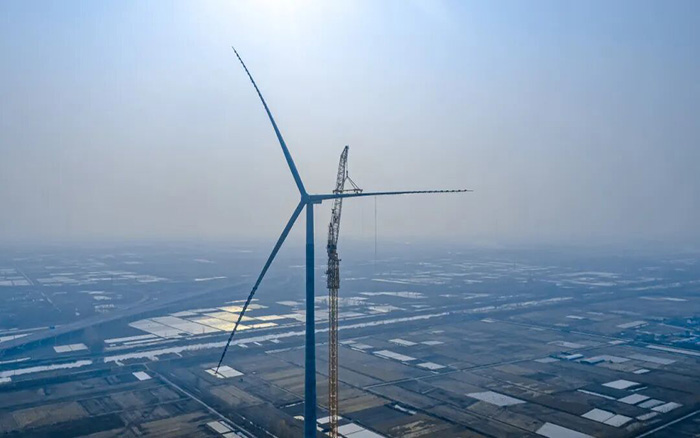 目前,风场正在如火如荼的建设中,徐工XGL3300-220S凭借其高效机动性,实现了风机吊装环节的快速衔接,助力一台台风机拔地而起,为绿色能源建设注入强劲动力。