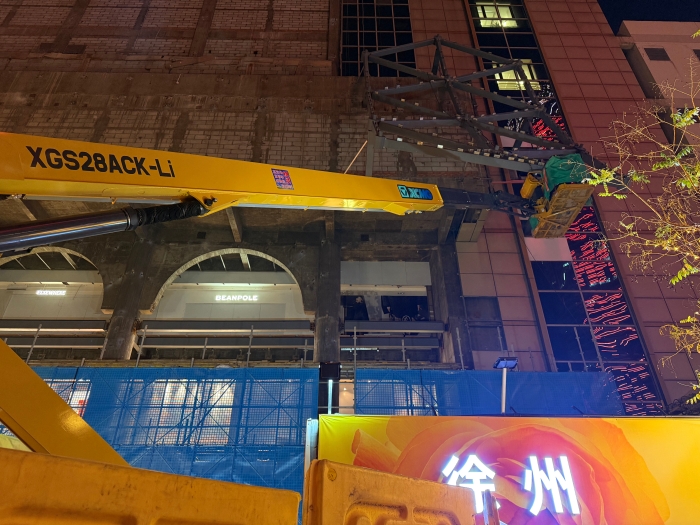 徐工XGS28ACK-Li直臂式高空作业平台环保静音,纯锂电动力系统实现零排放、低噪音,让商场施工期间仍能正常营业;紧凑的车身设计让车辆在商场有限空间内自如专场;臂架精准定位,使工作篮能够精准避开幕墙构件,抵达最佳焊接位置,大幅提升施工效率,获得现场施工人员一致好评。