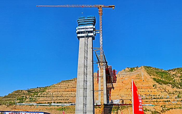 临猗黄河大桥主桥最高墩是钢箱梁连续顶推施工节点的控制性桥墩,施工难度大、风险高、工期要求紧。徐工XGT6015-8S1塔机高效运转,游刃有余的应对紧张、繁重的吊装任务,为项目建设保驾护航。