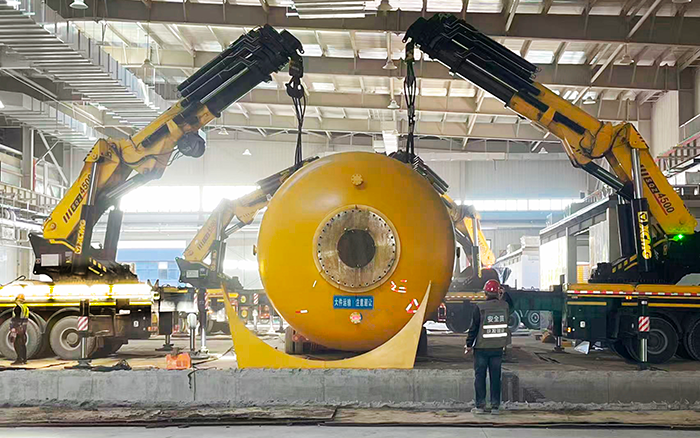 狭窄厂房内,四台徐工 SQZ4500C 折叠臂起重机如钢铁巨人并肩伫立,钢铁巨臂默契联动,稳稳托举 160t 高温炉,仅用 30 分钟便完成从起吊、转向到落位的全流程精准转运—— 这场高效硬核施工,尽显徐工折叠臂起重机的空间适应性、起重硬实力与超强作业效率。