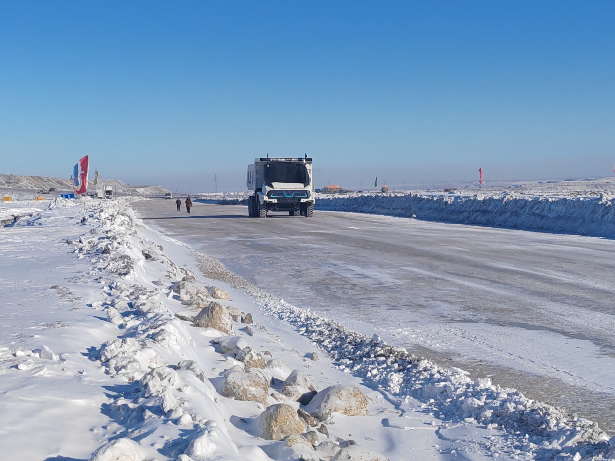 无人纯电矿卡在车架、货箱结构等方面采取特殊材质,且传动、液压、制动等系统经过优化调校,可轻松抵御-40℃的极寒挑战。电池容量568kW·h,续航能力强。在持续低温环境下,车辆三电系统性能稳定,其具备的强大环境适应能力,有力保障了矿山生产在严冬季节的连续性与稳定性,切实达成了全天候高效运营的目标。