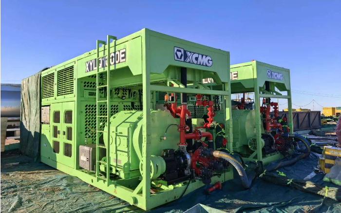 该项目涉及两口井,井深分别达4000m和2800m,要求设备24小时连续运转,稳定提供排量近500L/min、压力大于30MPa的冲井液。面对零下30℃的极寒工况,徐工设备依然稳定出勤、持续高效运行