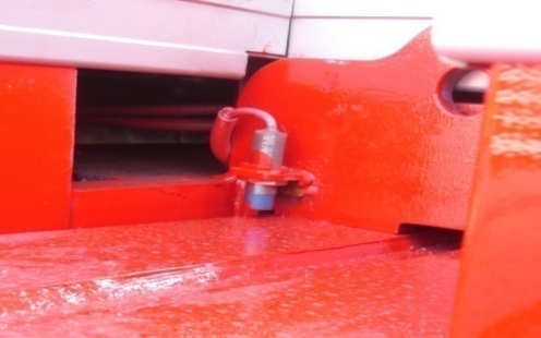 (2)如果开关损坏,更换检测开关,再反复微调滚轮的高度,使开关信号能保证自动收车时,臂架正好落到臂架支架上。